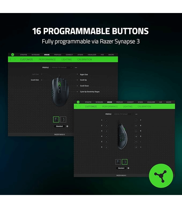 Tailored specifically for MMO and MOBA players, the Naga X features up to 16 fully programmable buttons, including a 12-button side panel designed to fit perfectly under your thumb. This extensive button array lets you assign multiple skills, spells, macros, and keybinds directly to your mouse, reducing the need to reach for the keyboard and enabling lightning-fast gameplay. With Razer Synapse 3 software, each button is fully customizable, allowing you to personalize your setup for different games or playstyles.